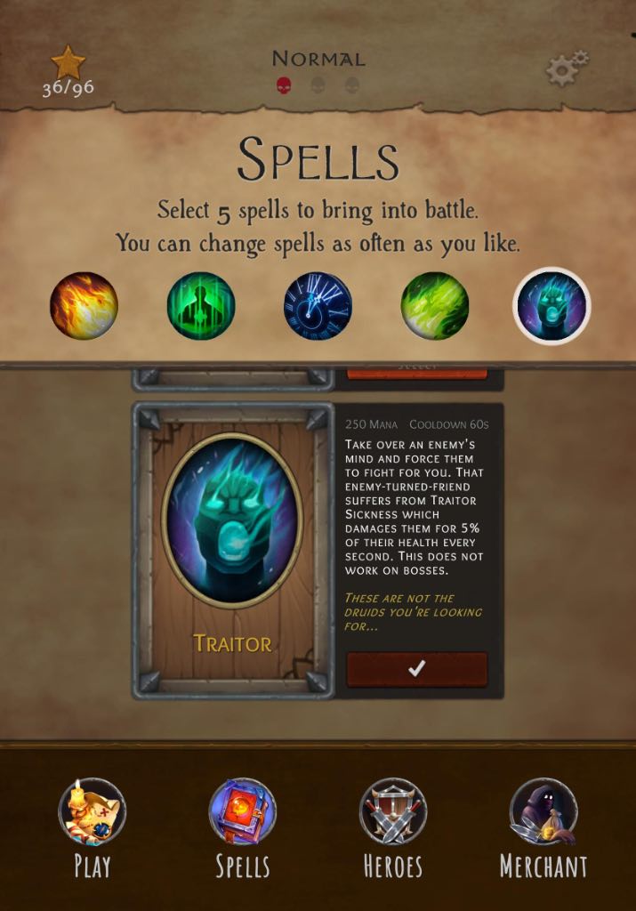 Oh yeah… the entire game is 100% FREE! Yep, play every level as many times as you like with no timers, hearts, or in-game currency to slow you down. You unlock new spells and characters by simply playing the game and advancing through the story. There are some just-for-fun spells that you can purchase from the in-game merchant if you want to take the whackiness of the game to the next level, but the core game is yours for free.